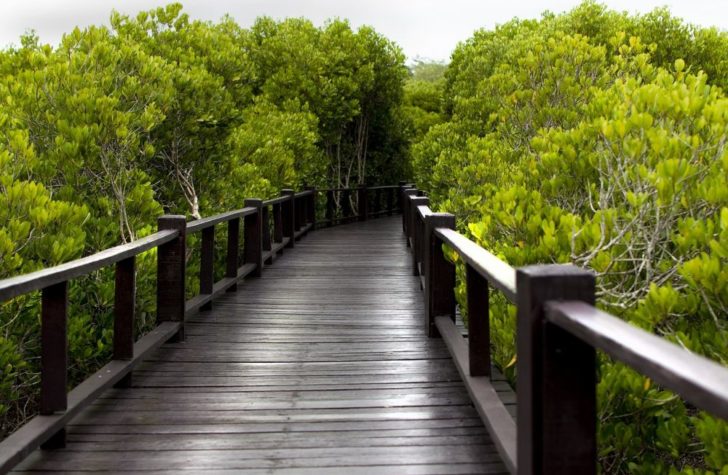 Andra upplevelser kan vara vandringar på upphöjda träspänger genom skogarna. Det låter dig se mangroven från ett helt annat perspektiv, där du ser rötterna under dig och trädkronorna ovanför. Här är det lättare att få syn på fåglar, fjärilar och andra djurarter som rör sig över tidvattnet.